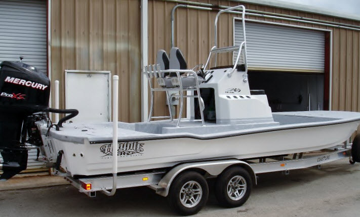 The 23 Cat is built to run the flats and cross big bays without taking a beating. The 23 cat is guaranteed to give you a fast, smooth and dry ride as you cross those choppy bays. With the 23 Cat having almost a 9' beam it gives you maxixum storage options without taking away from your fishing room we all tend to run out of. So if you're looking for a boat with tons of room and plenty of fishing space our 23 & 24 Cat is the boat for you. So come on in and let us help you design the perfect fishing rig. A standard rig from the manufacturer includes the hull with console, hatches, windshield and cushions. The boat is built to accommodate your rigging needs..... The rigging options are limitless. They include options such as Hyd steering, Hyd J-plate & trim tabs, GPS, Powerpole, Satelite radio, fish boxes, leaning post, tournament seats, burn bar, casting platforms, poling platforms, k-top, swim platform etc.... The options are endless.